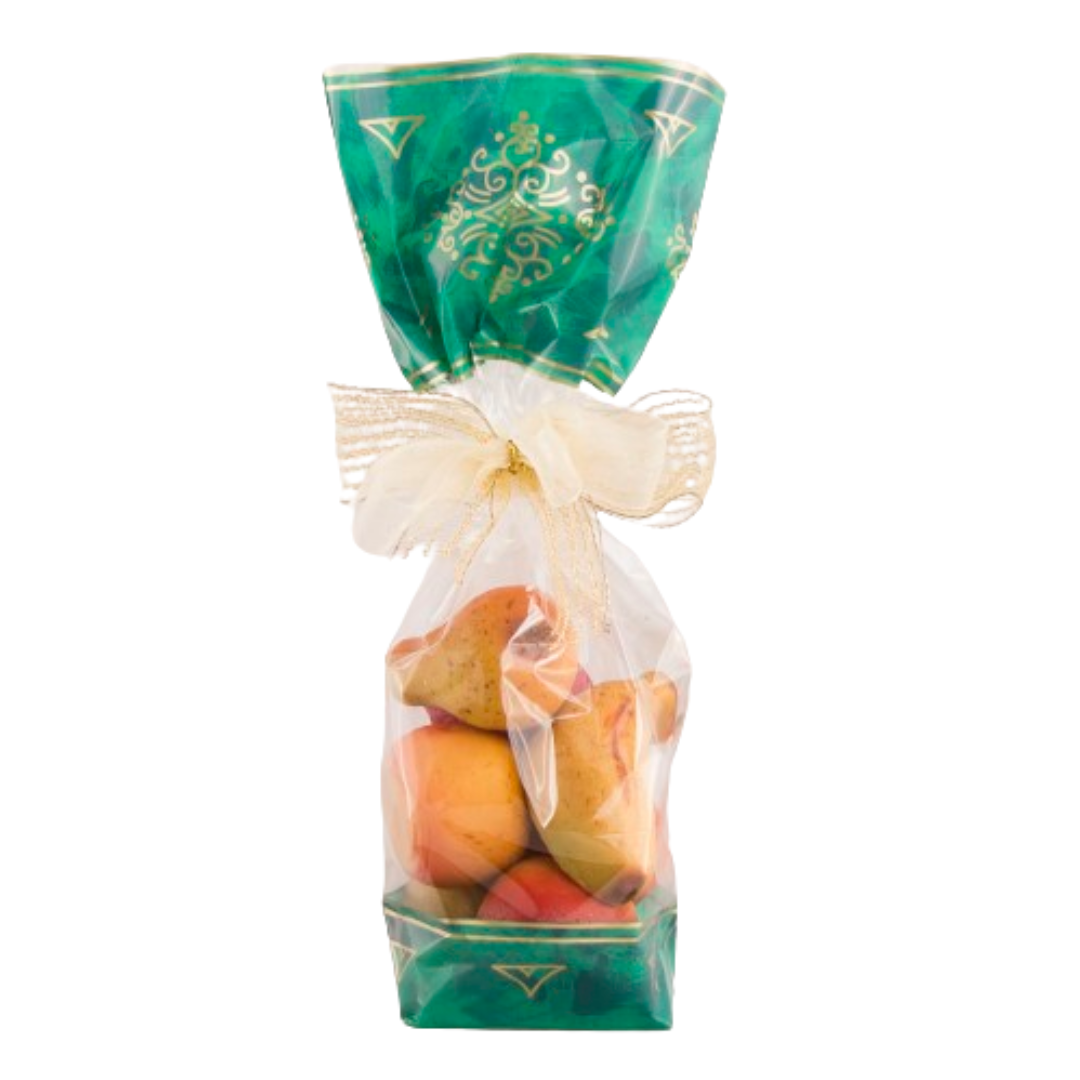 De kruisbodemzak is een typische stazak en wordt ook wel toefzak genoemd. De producten die kunnen worden verpakt zijn heel divers. Voorbeelden zijn noten, snoep en chocolade, maar ook non-food artikelen worden verpakt in deze zak. Deze zak is ook uitermate geschikt voor de wat luxere artikelen. Dit model leent zich namelijk uitstekend om mooi af te maken met een mooie toef. De maatvoering wordt aangegeven als Breedte x Hoogte. De zak is leverbaar met een cellofaan of een kartonnen bodemblad. De kruisbodemzak met kartonnen, zilveren bodemblad, presenteert het product nog mooier en geeft een bijzondere luxe uitstraling, dus meerwaarde, aan de inhoud.